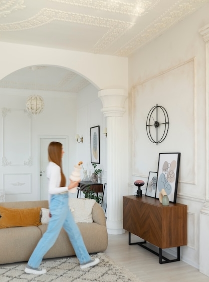 Декоративные плинтусы выполняют несколько функций. Во-первых, они защищают стены от механических повреждений, которые могут возникнуть при уборке или передвижении мебели. Во-вторых, плинтусы помогают скрыть неровности и недостатки стыков, создавая аккуратный и гармоничный вид. В-третьих, они могут стать акцентом в интерьере, добавляя стиль и индивидуальность.